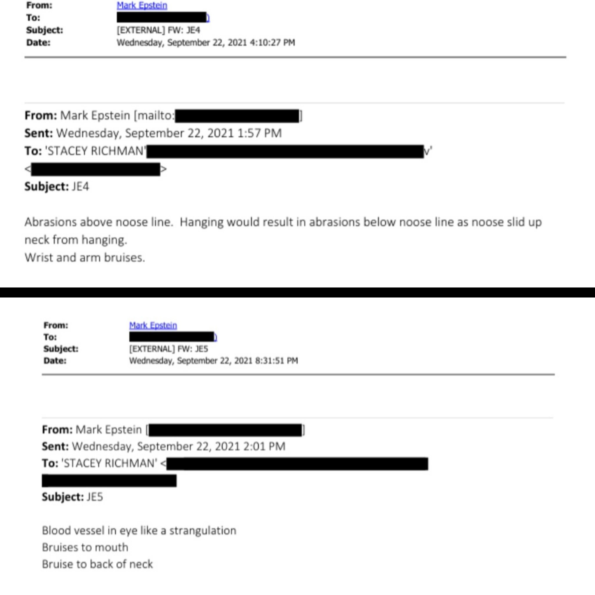 Emails from Epstein’s brother Mark show details on why the second medical examiner ruled it a murder.